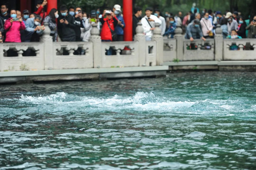 據了解,當趵突泉地下水位達到28.50米時,“趵突騰空”勝景就會出現,而趵突泉地下水位躍升至29米時,濟南72名泉中水位最高的月牙泉才能噴涌,也標志著72名泉全部噴涌。據統計,截至8月15日“趵突騰空”已持續40天,“月牙飛瀑”也持續了31天,正值最佳賞泉觀水時期。